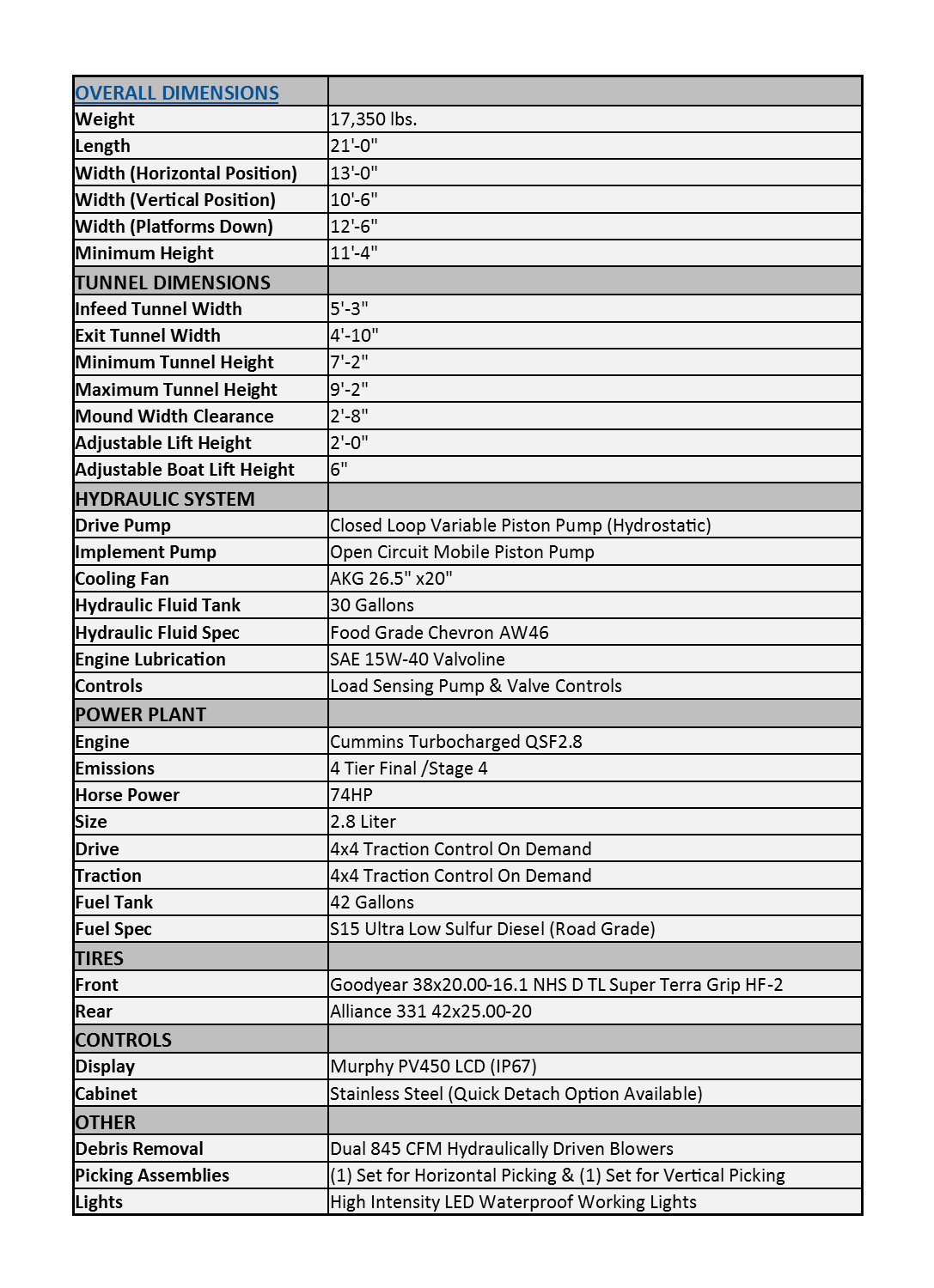 The Fulcrum is the most versatile Fresh Fruit Harvester available. It can transition from a horizontal picking position to a traditional vertical picking position. The 63” wide tunnel entry allows for longer picking fingers, which also enables the rotary heads to be further apart and pick larger bushes more effectively. Ordinary harvesters use hard plastic or metal to catch the berries, which can bruise the fruit. The Fulcrum, on the other hand, uses a sloped “No-Bruise” padded harvesting bed along with “No-Bruise” padded catcher plates. These features dramatically improve the look and increase the shelf life of your fruit.